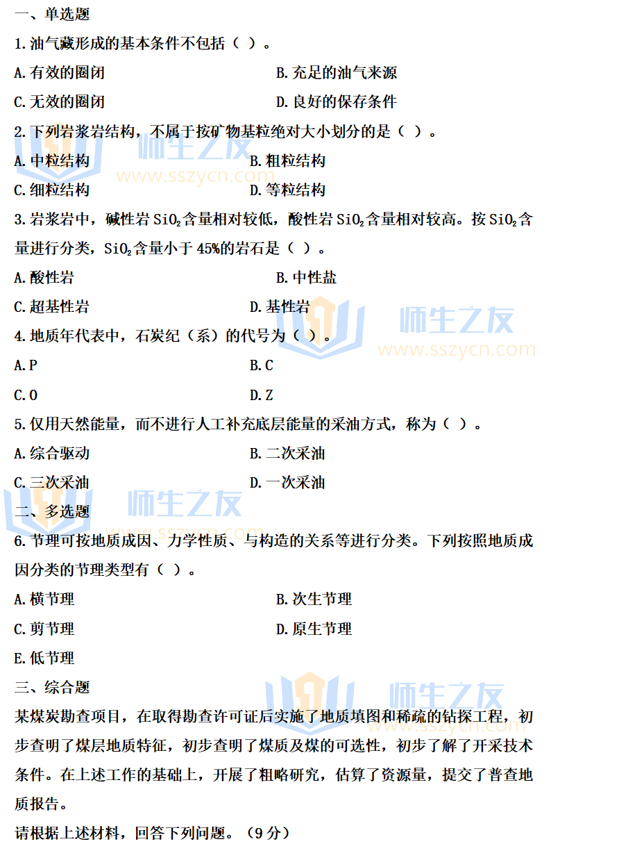 2022地质与矿业工程基础真题(考生回忆版).pdf