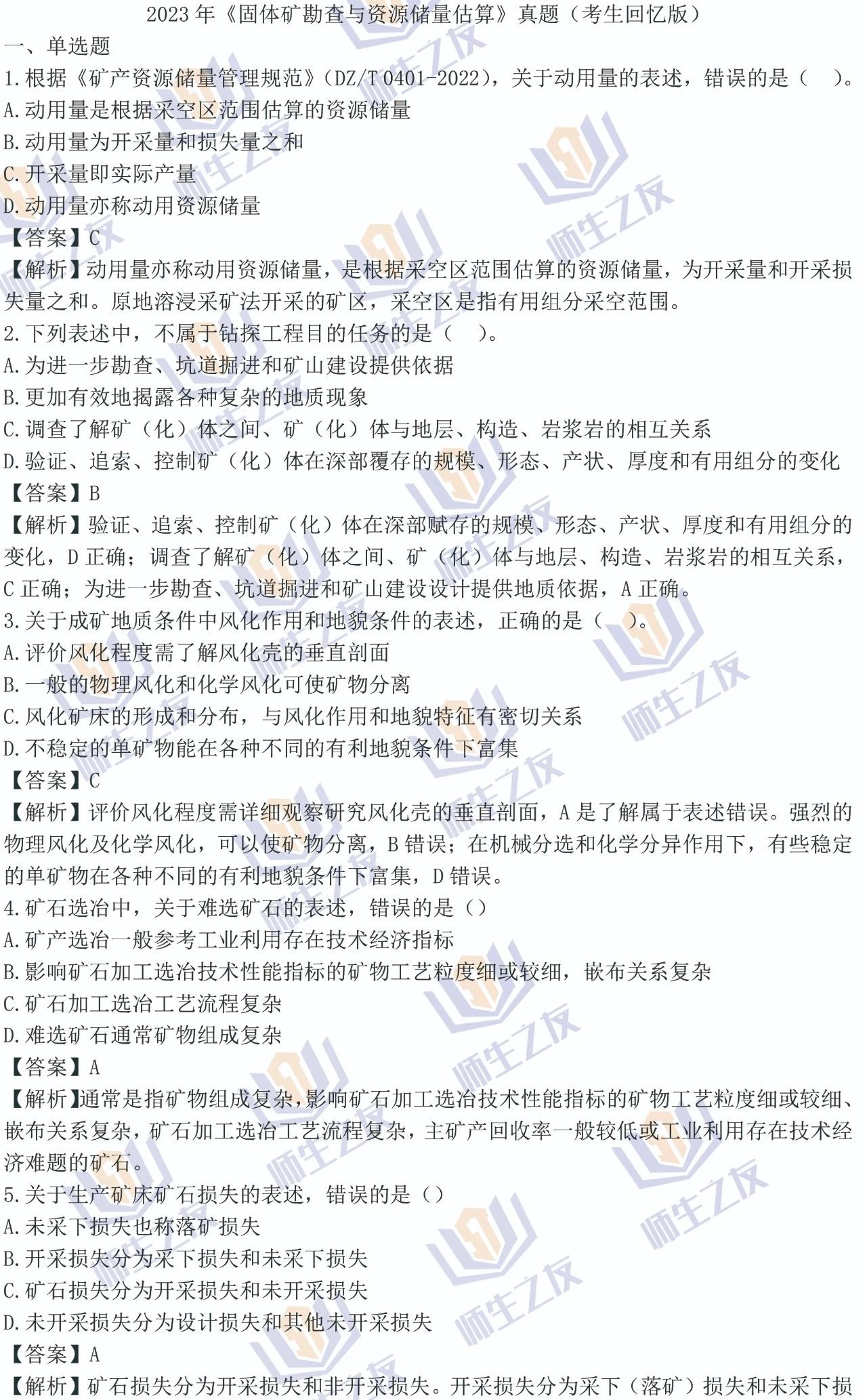 2023年矿业权评估师考试《固体矿勘查与资源储备估算》的真题(考生回忆版带答案)给大家整理出来了,供大家参考,下载方式在文末。